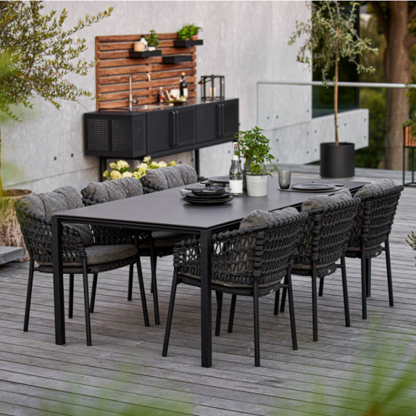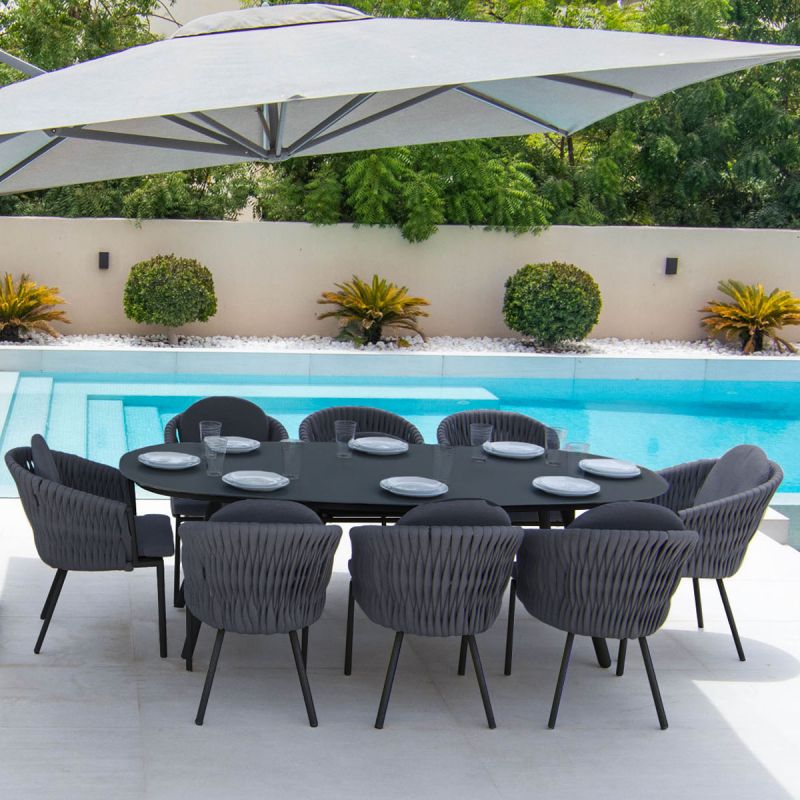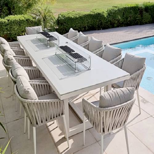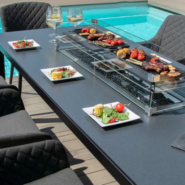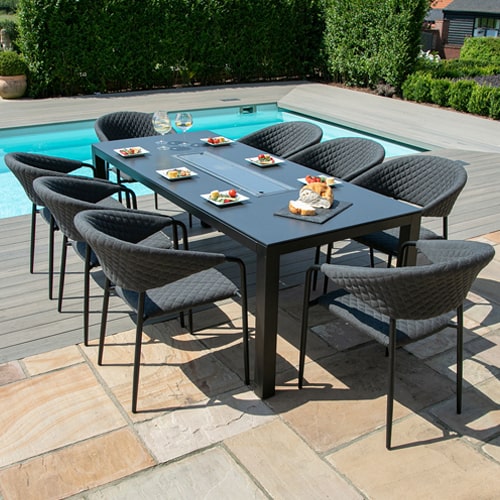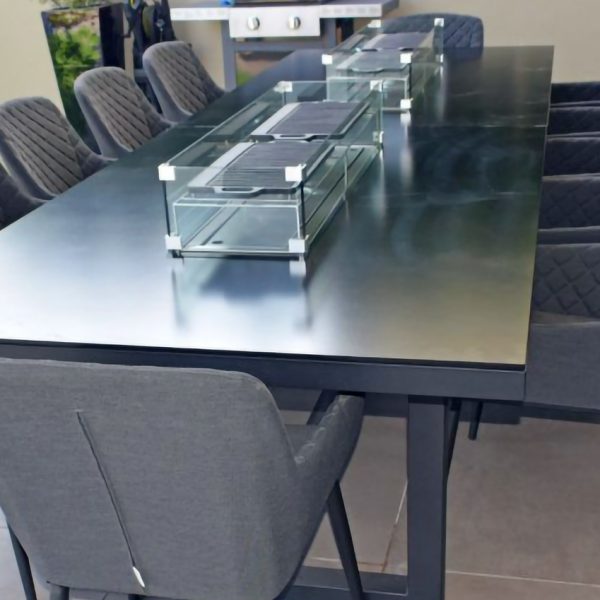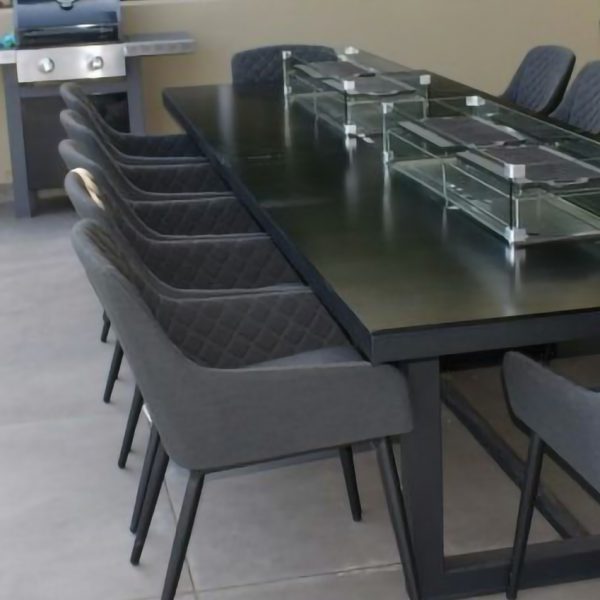 Outdoor Fabric – Zest 12 Seat Dining with Double Firepit – Charcoal