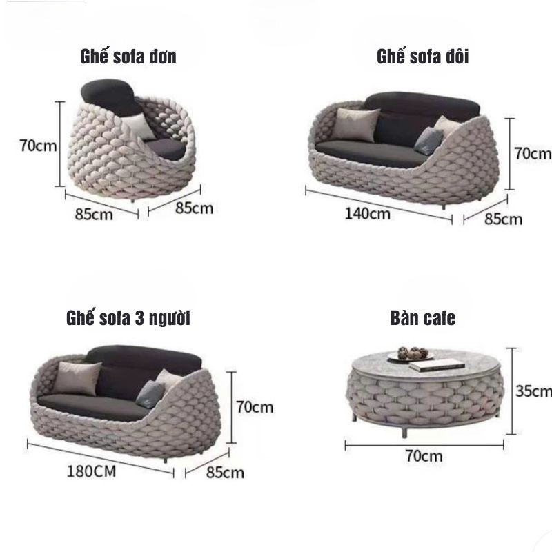 Bộ Sofa Bàn Ghế Ngoài Trời Đan Dây Thừng – Điểm Nhấn Hoàn Hảo Cho Không Gian Ngoại Thất 2025