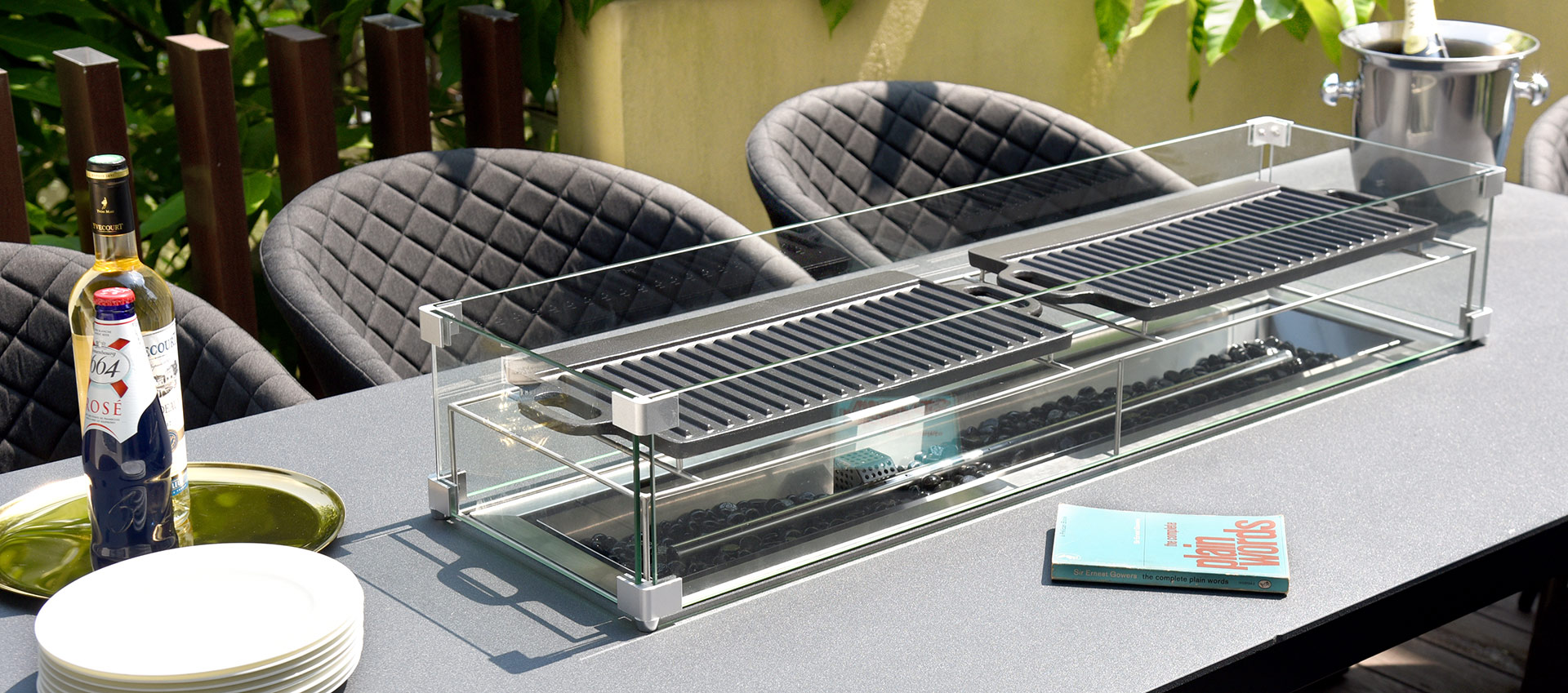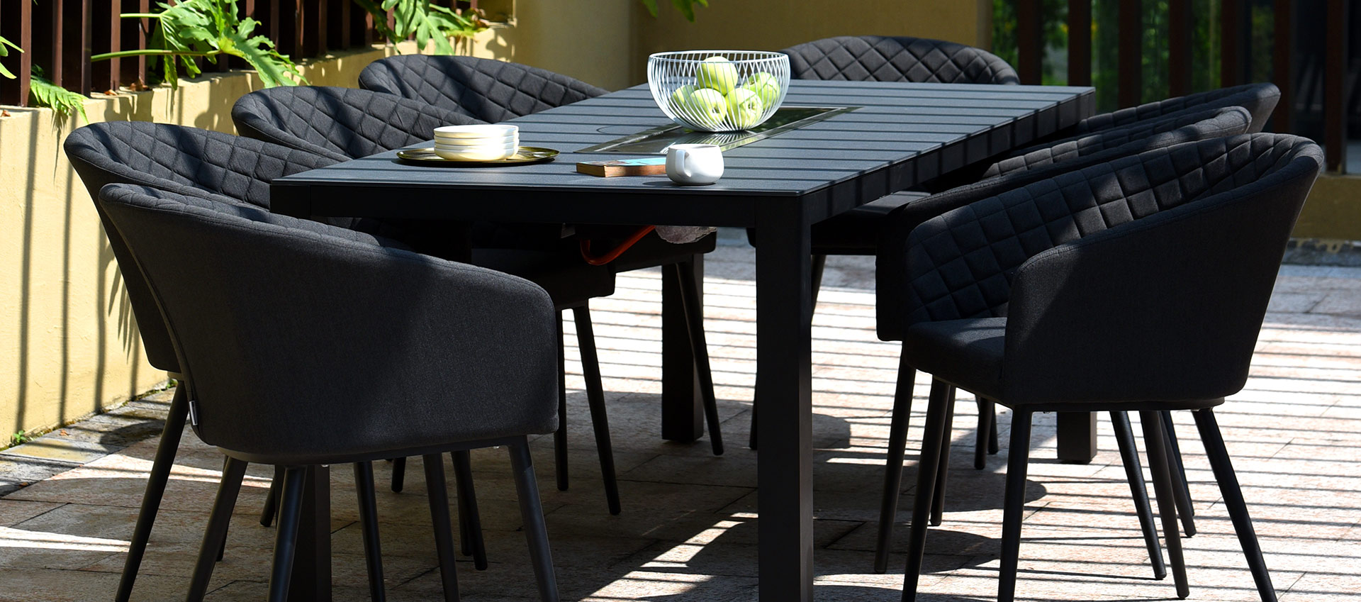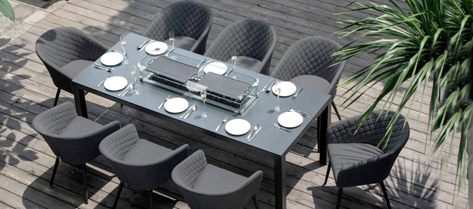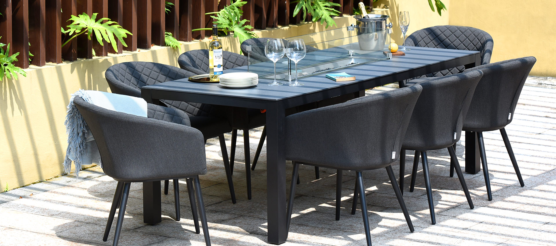 Outdoor Fabric – Ambition 8 Seat Dining Set with Firepit Table