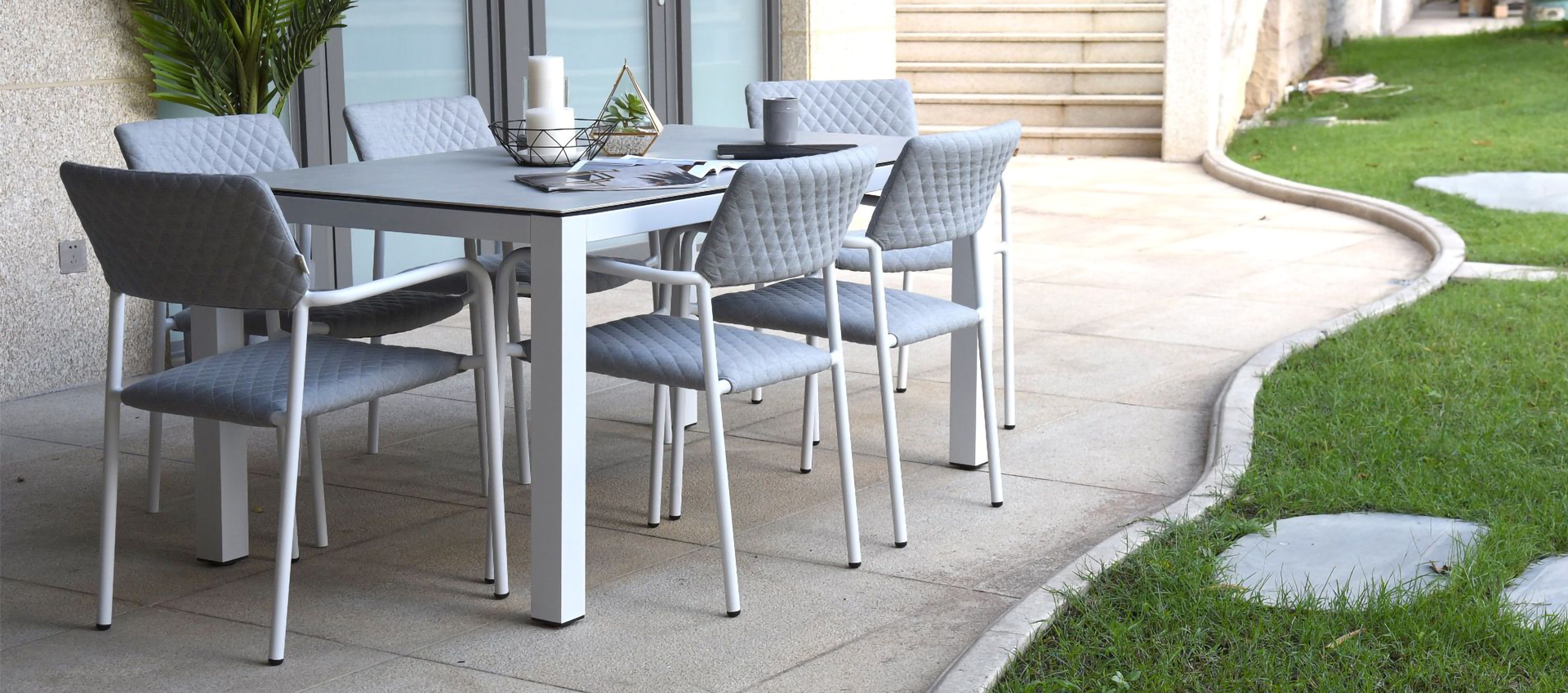 Tất cả đồ nội thất của chúng tôi được hàn hoàn toàn bằng nhôm, thành phần duy nhất đòi hỏi phải lắp ráp là bàn, dù che nắng và hộp lưu trữ của chúng tôi (một số ghế ăn có thể được lắp ráp).