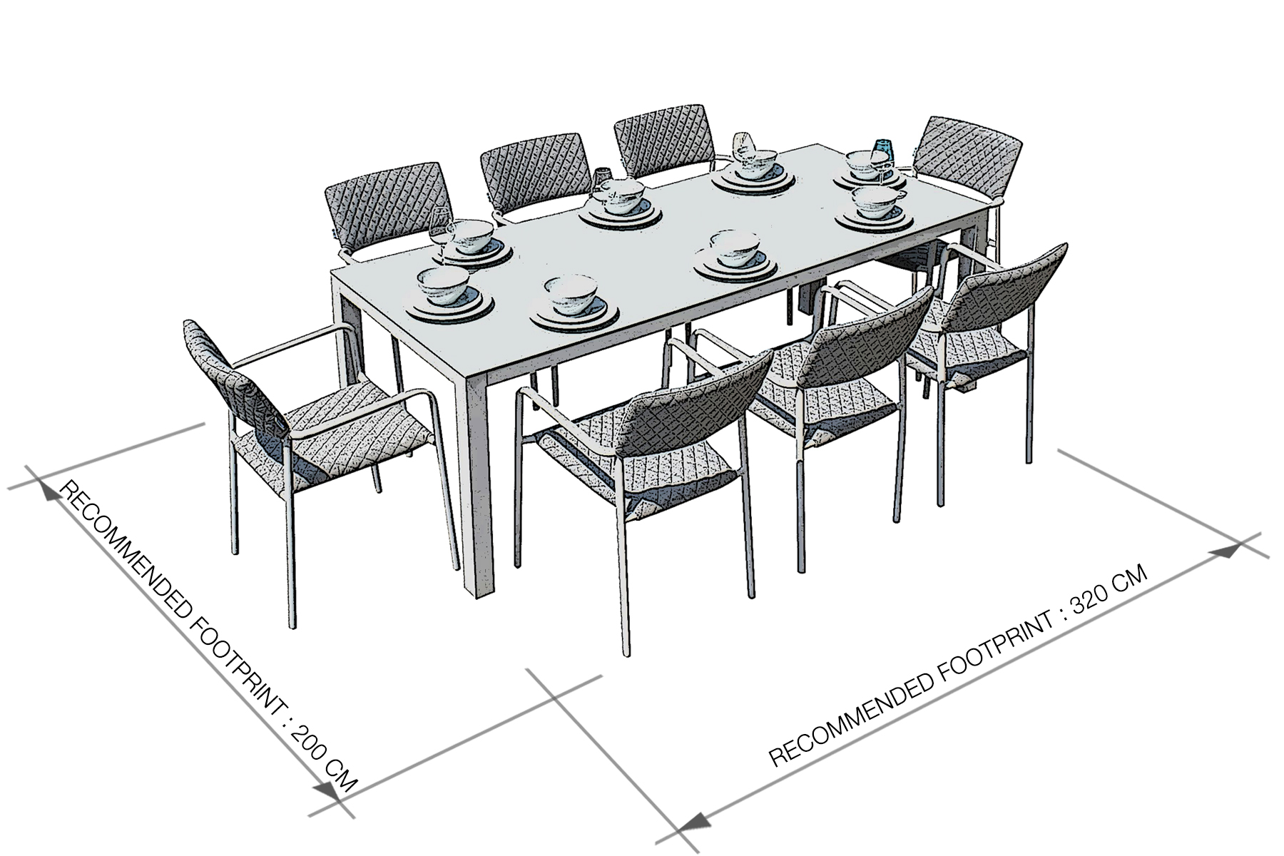 The Bliss 8 Seat dining Set is as opulent as it is simple, finished with a quilted back which creates real depth of style and personality. With easily stackable chairs, this set is a true space saver and easy to transport.