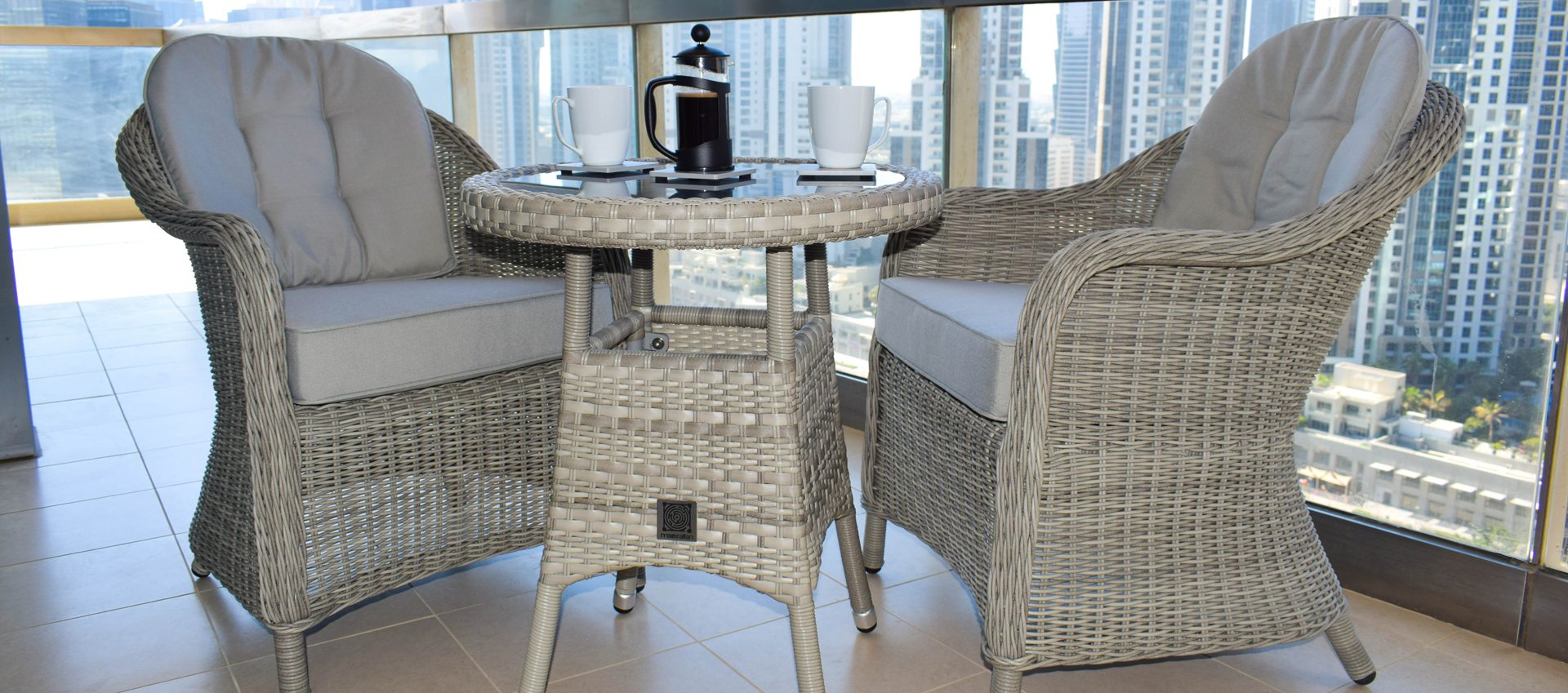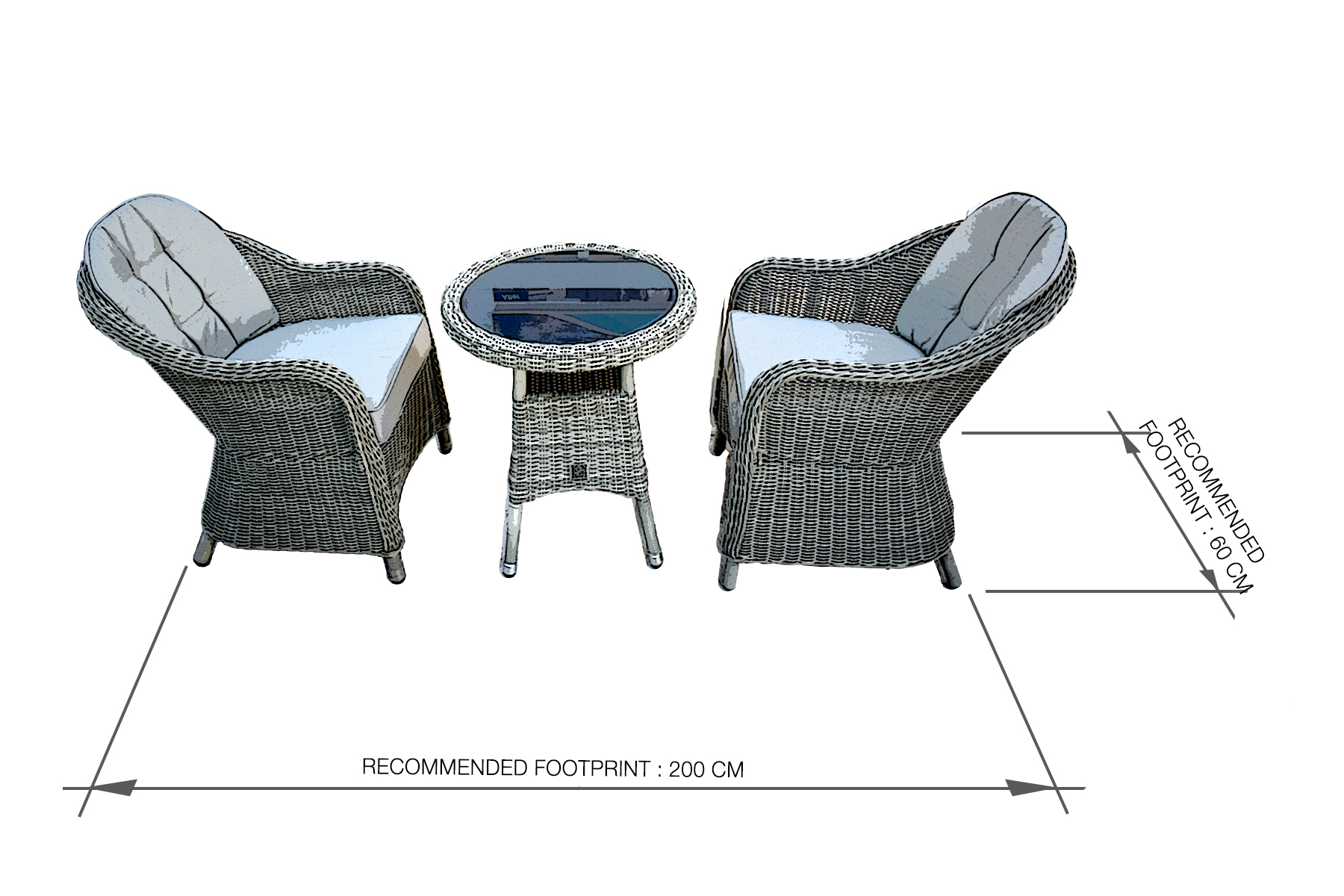 Relax in comfort and style with the Oxford 3 piece bistro set. This elegant Oxford set is made with total relaxation in mind, with the base and back cushions having extra deep filling for added comfort . The table has a woven edge top complete with toughened safety glass, whilst the seats come with extra thick piped cushions that are removable for washing.
